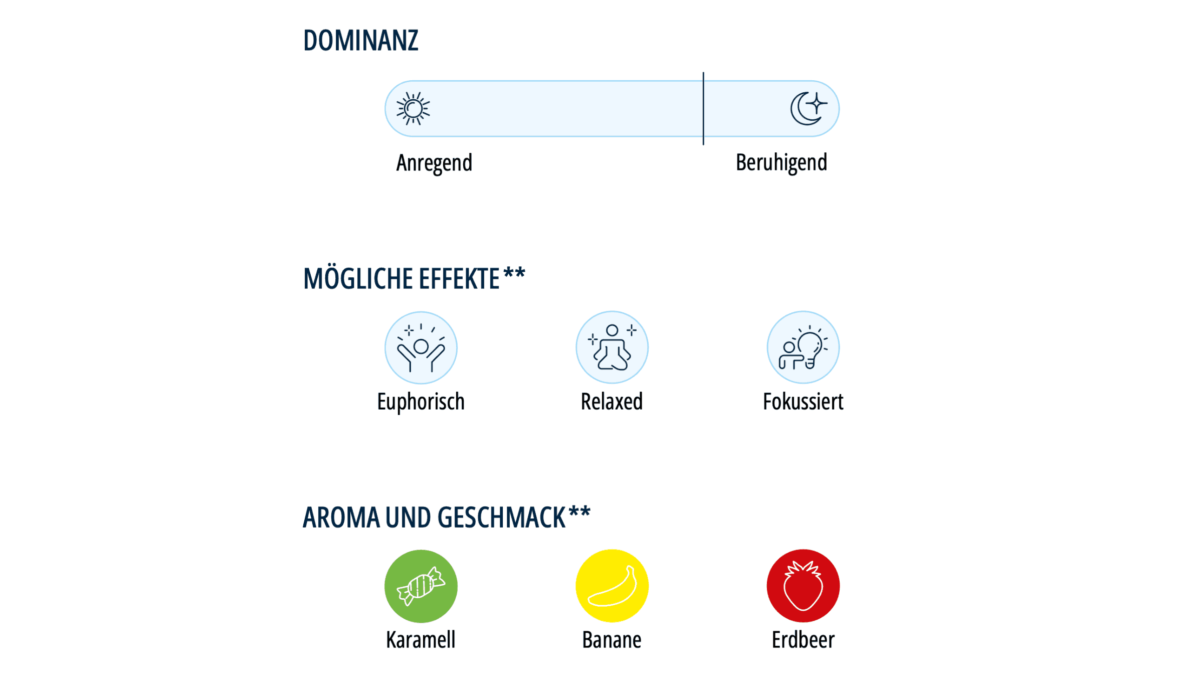 Die Informationen auf dieser Seite beruhen auf Angaben und Erfahrungen unserer Nutzer und sind kein Ersatz für professionelle medizinische Beratung. Hole dir den Rat eines Arztes ein, bevor du Cannabis zur Behandlung einer Krankheit verwendest.