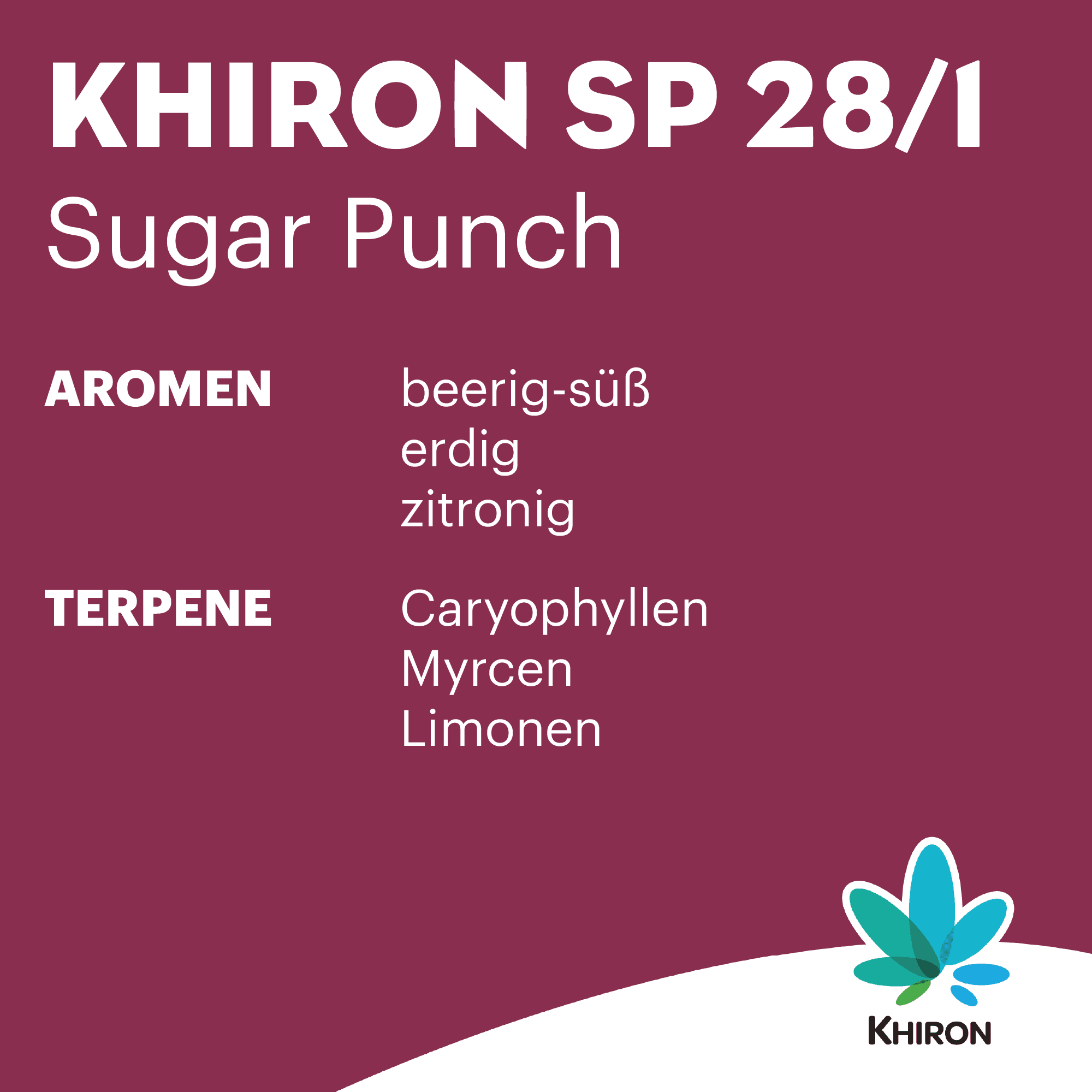 Der Gesamtterpengehalt liegt bei etwa 1,79 % (w/w). Caryophyllen ist das dominante Terpen, begleitet von Limonen, Myrcen, Humulen und Guaiol. Diese Zusammensetzung prägt das erdig-würzige Fundament der Blüte und unterstreicht die süß-zitrischen Akzente. Als Chemotyp-1-Blüte (THC-prädominant) wird Sugar Punch häufig als intensiv und zugleich ausgleichend beschrieben. Erfahrungsberichte deuten darauf hin, dass die Sorte insbesondere bei erhöhter körperlicher oder mentaler Belastung eingesetzt werden kann, ohne die Balance zu verlieren.
