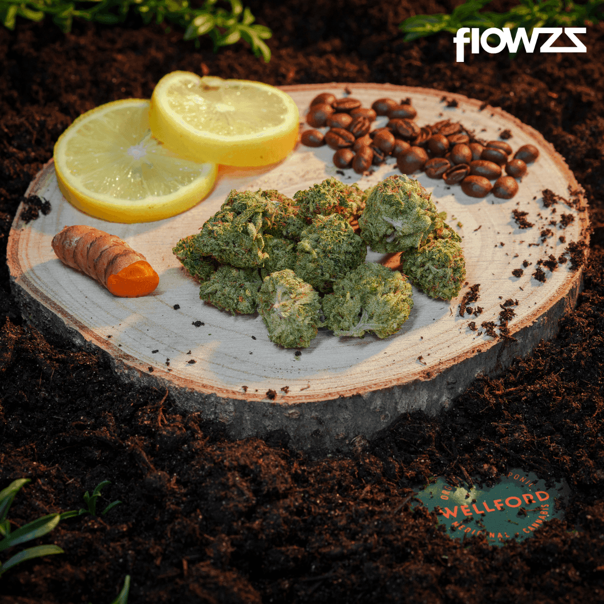 Nach der Ernte werden die Cannabisblüten 7-10 Tage lang getrocknet und anschließend für etwa 2 Wochen in Fässern gereift. Die getrockneten und getrimmten hellgrünen Knospen mit ihren auffälligen Stigmen präsentieren sich in unterschiedlichen Formen, während der hohe Terpengehalt kräftige Diesel- und Gewürzaromen entfaltet.