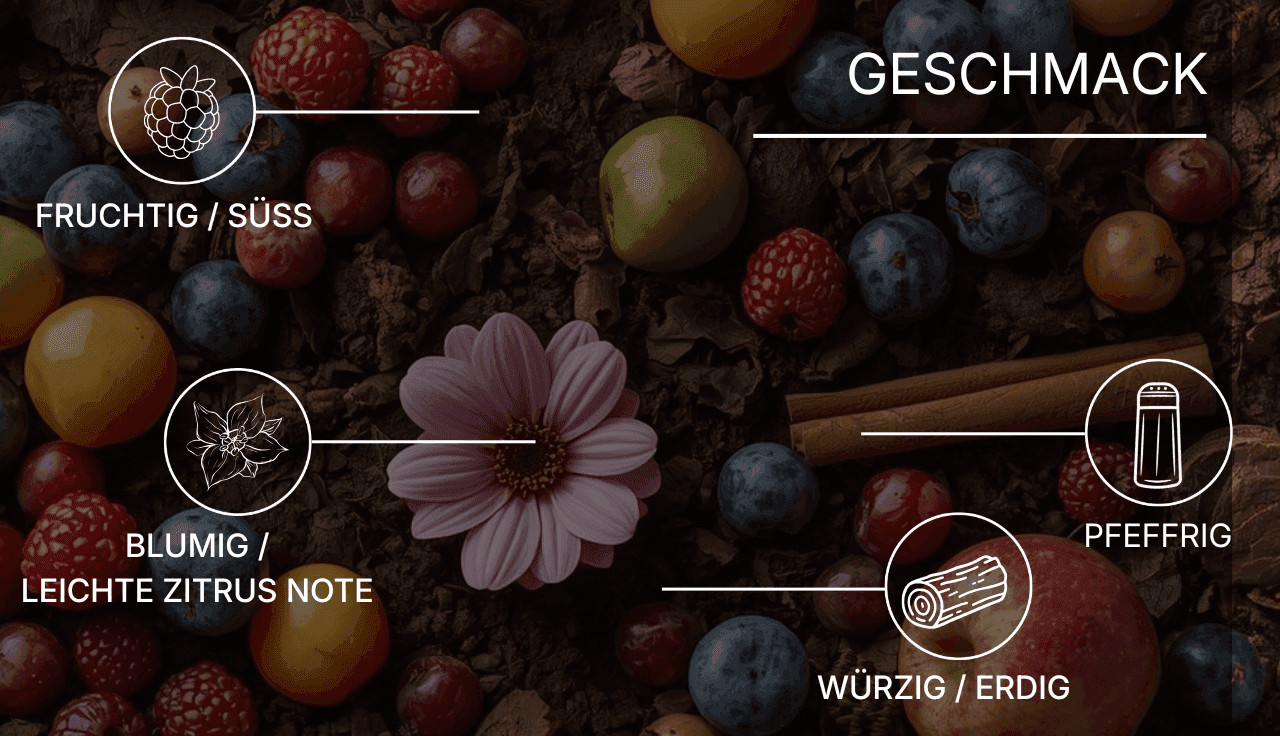 • Caryophyllen Bringt würzige, leicht pfeffrige Nuancen ins Profil und wird im Zusammenhang mit potenziell entzündungshemmenden Eigenschaften diskutiert.