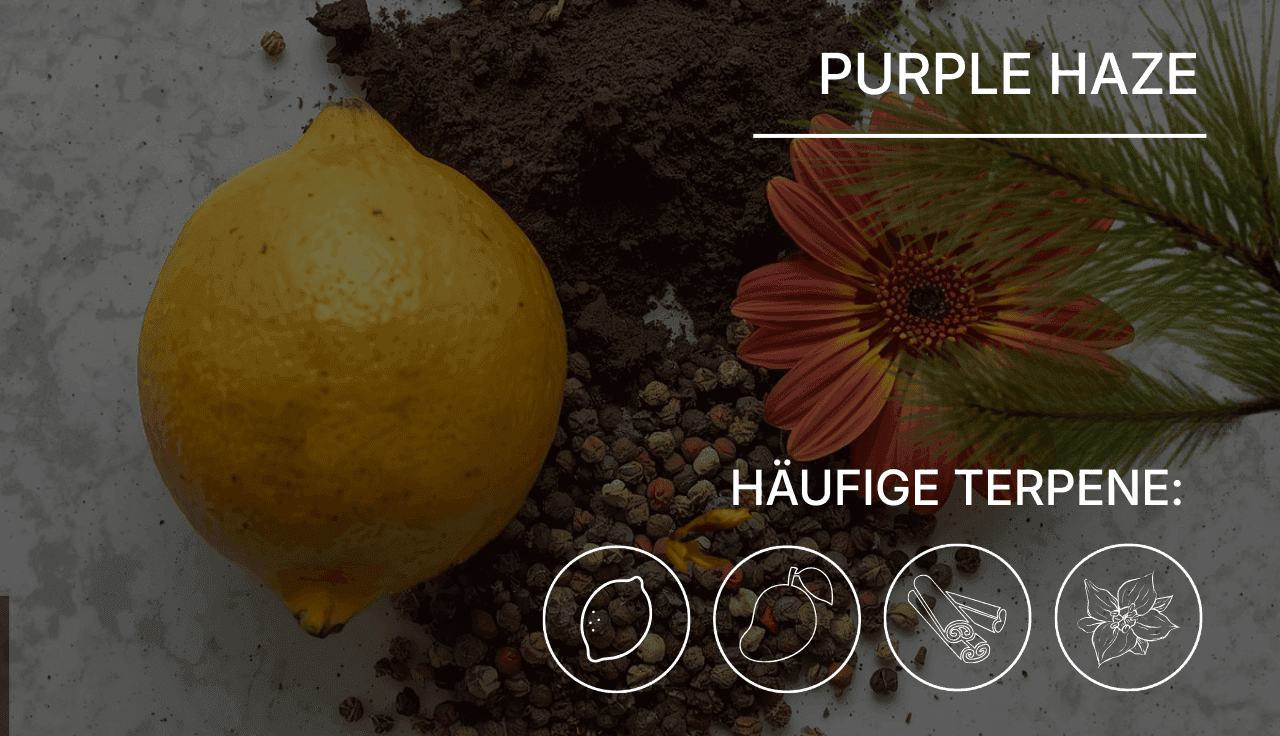Das Aroma und die Wirkung von Purple Haze lassen sich maßgeblich durch ihr Terpenprofil erklären. Häufig dominieren folgende Terpene: