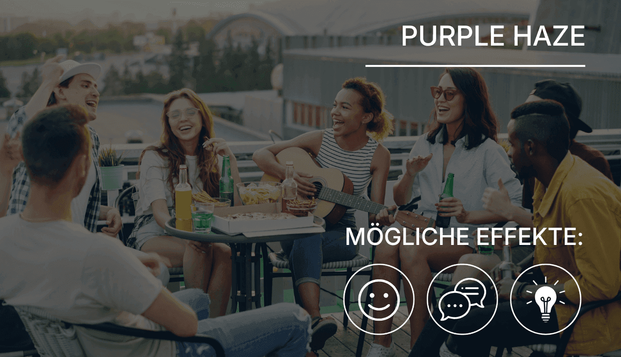 Durch die klare, nicht zu schwere Wirkung eignet sich Purple Haze besonders für den Tagesgebrauch, ohne stark zu ermüden.