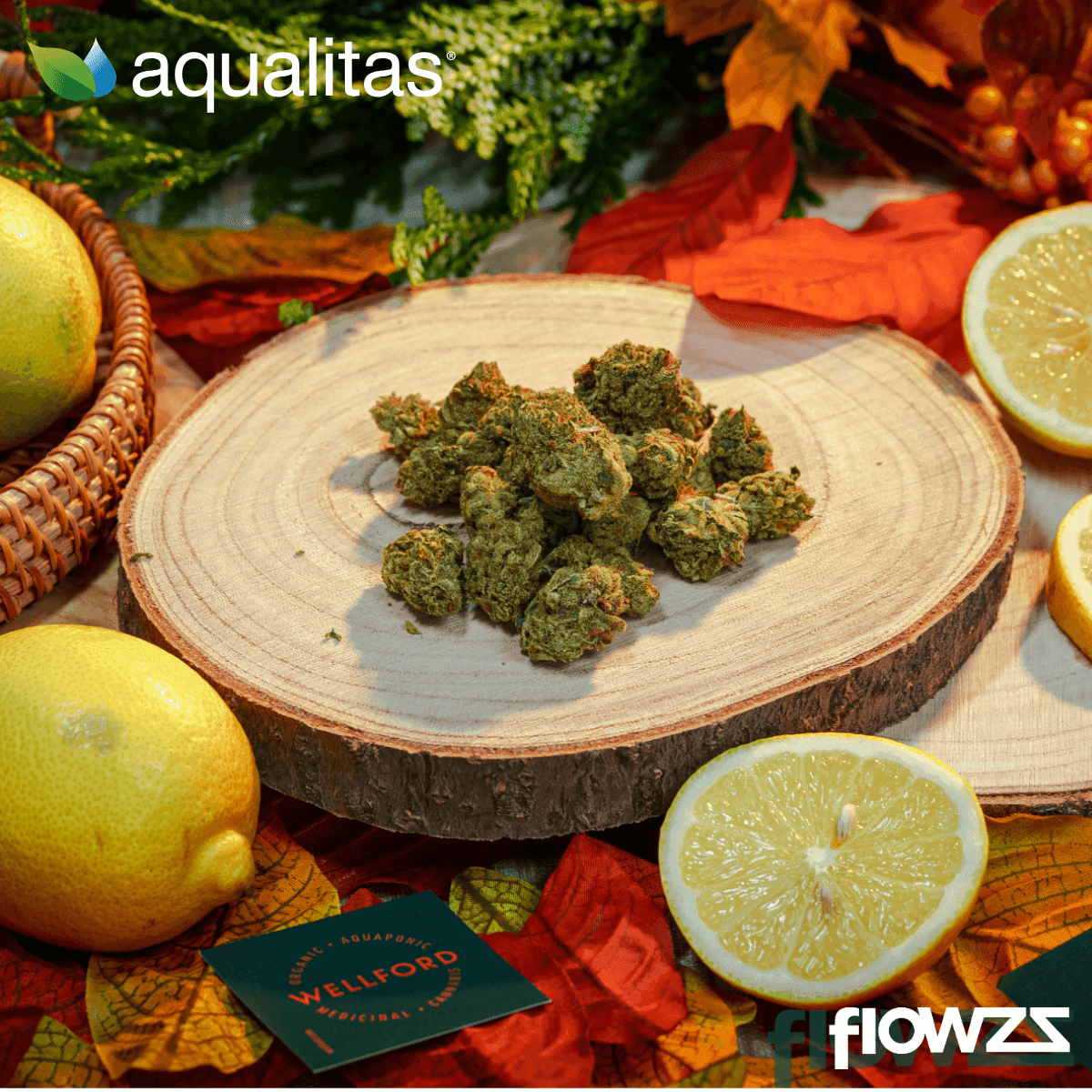 Wellford Aquaponic 23/1 QSG wird von Aqualitas, einem führenden kanadischen Unternehmen, kultiviert. Mit der Clean Green-Zertifizierung seit 2018 steht Aqualitas für umweltfreundliche, nachhaltige Anbaumethoden. Die Pflanzen wachsen in Organic Living Soil und profitieren von einem innovativen Aquaponik-System, das Koi-Fische integriert. Nach der Ernte wird jede Blüte hängend getrocknet, handverlesen und unbestrahlt geliefert, um höchste Qualität zu gewährleisten.