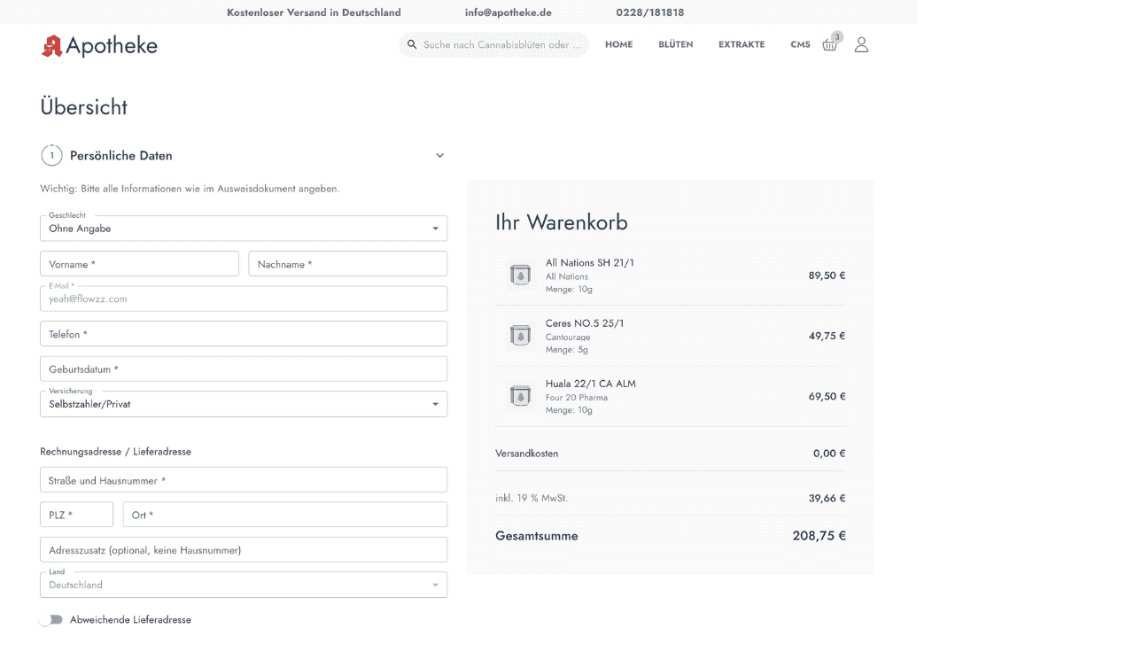 Du kannst bis zu drei Produkte für dein Wunschrezept zusammenstellen – Blüten, Extrakte oder eine Kombination aus beidem. Gehe dafür auf unsere