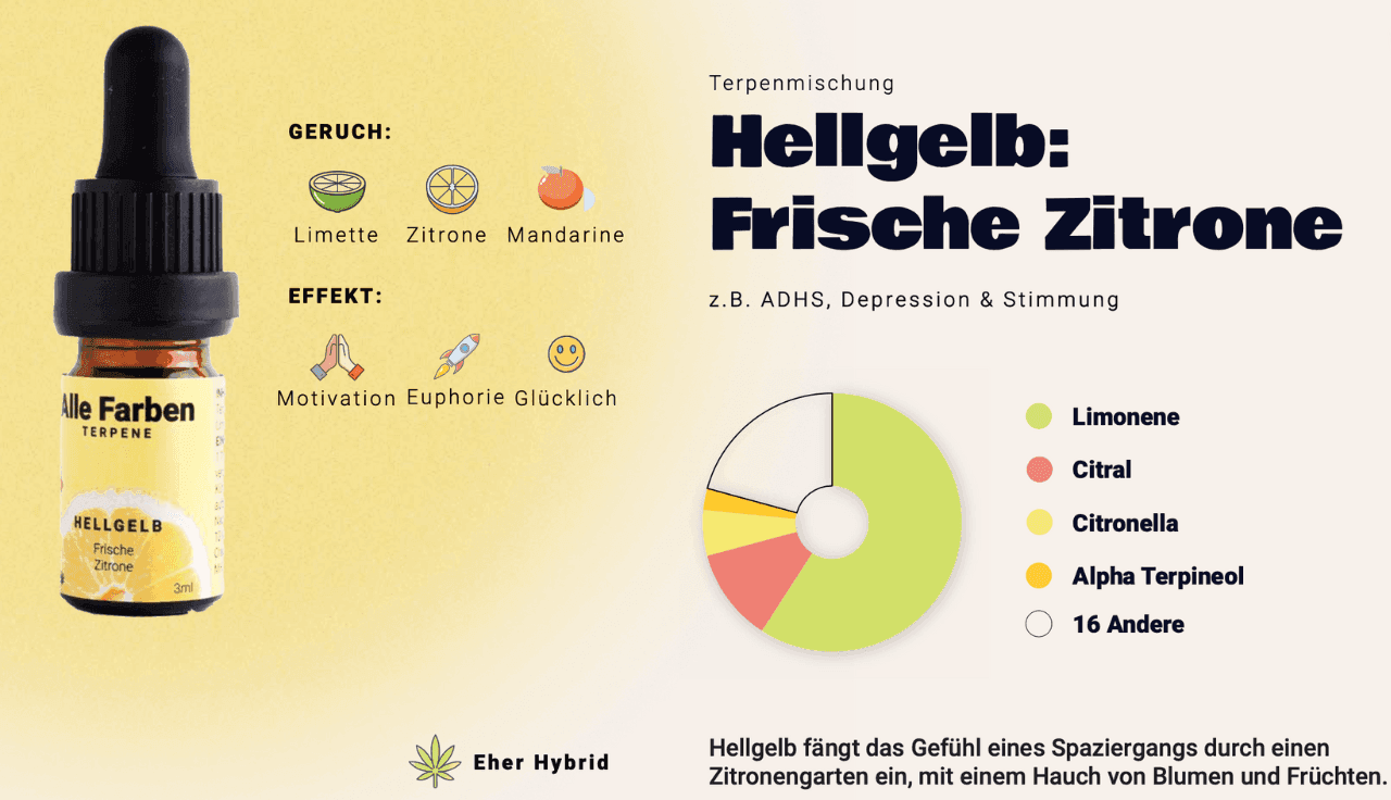 Cannabis enthält eine Vielzahl von Terpenen, die jeweils Aroma, Geschmack und Wirkprofil beeinflussen. Neben Limonen gibt es außerdem